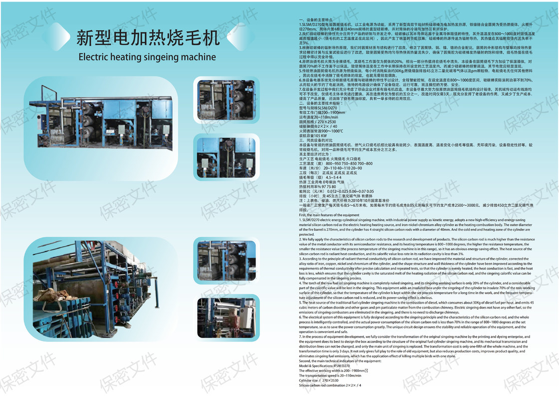 | টেক্সটাইল সিঙ্গিং মেশিন | 20 ~ 110m / min | ১৮০ কিলোওয়াট | 250cm * 235cm * 225cm |